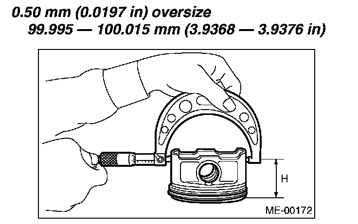 0.50 mm (0.0197 inch) oversize: 99-995 - 100.015 mm (3.9368 - 3.9376 inch)