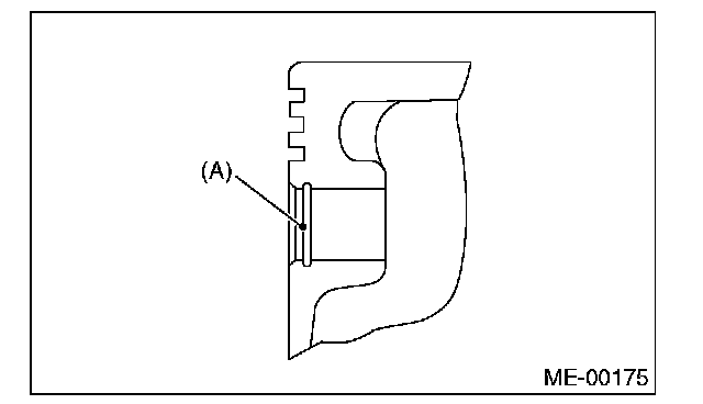 4. Check the snap ring installation groove (A) on the piston for burr. If necessary, remove burr from the groove so that the piston pin can lightly move.