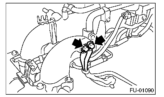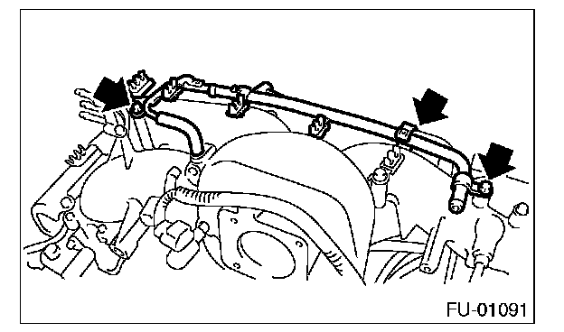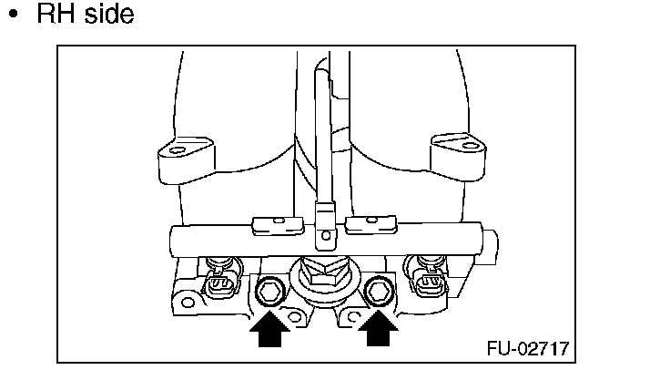 14. Remove the bolts which secure fuel injector pipe on the intake manifold as shown in the figure.