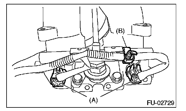 ^ Connect the hoses (A) and (B) to intake manifold.
