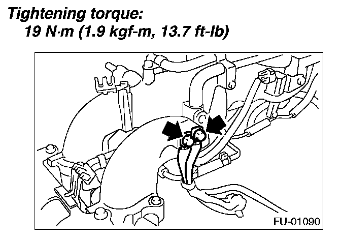 1. Tighten the bolt which installs the fuel pipe assembly on intake manifold.