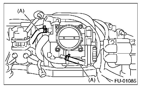 8. Disconnect the engine coolant hoses (A) from throttle body