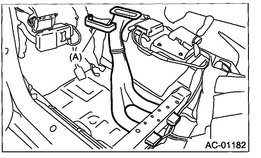 Remove the rear heater duct cover (A). Draw out the rear heater duct from the unit assembly and slide it forward to remove.