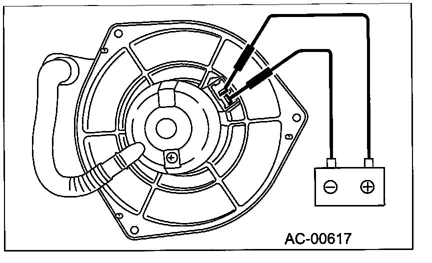 Connect the motor connector terminal 1 from the battery to the positive (+) lead and terminal 2 to the negative (-) lead. Make sure the motor runs smoothly.