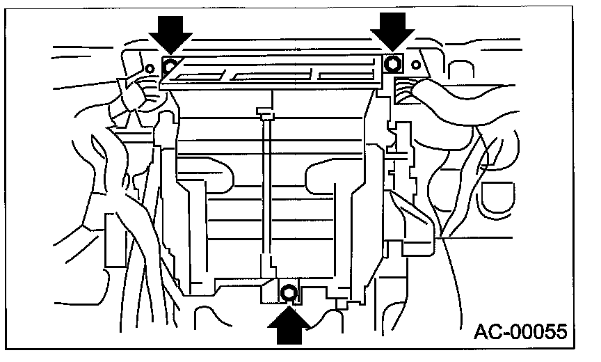 Remove the bolt securing expansion valve and pipe in engine compartment. Release the heater hose clamps in engine compartment to remove the hoses.