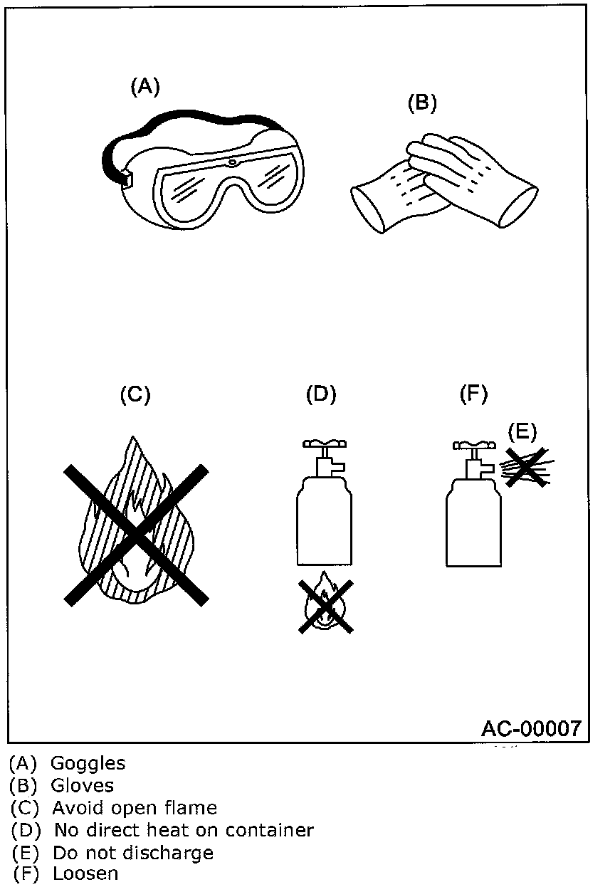 - Do not drop or impact a service can. (Observe the precautions and operation procedure described on the refrigerant can.)
