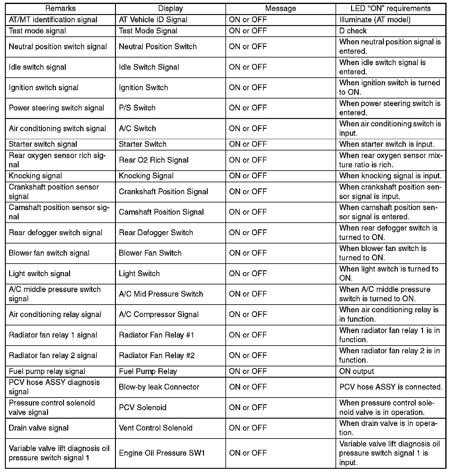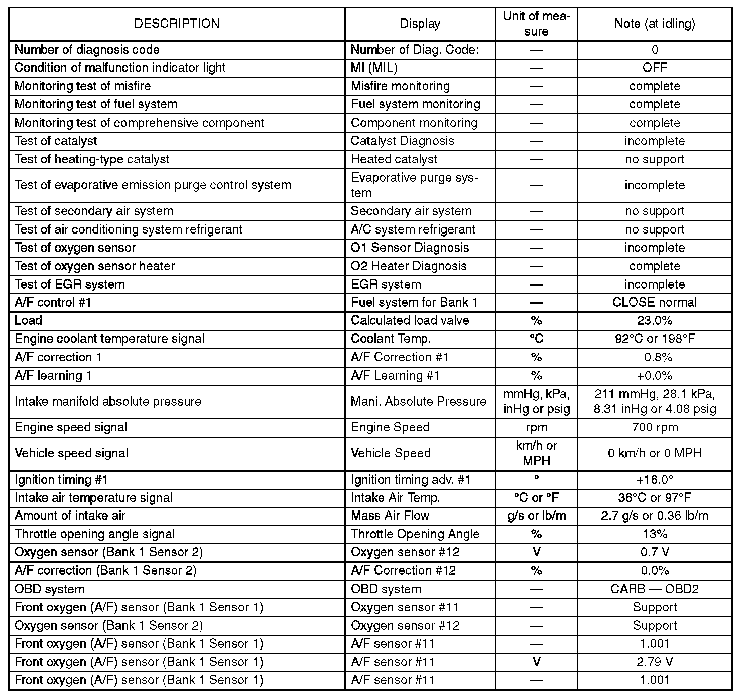 5. READ CURRENT DATA FOR ENGINE (OBD MODE)