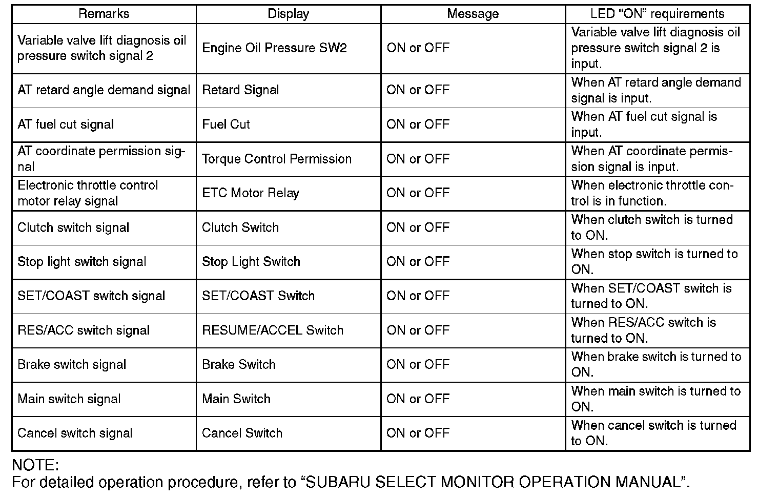 NOTE: For detailed operation procedure, refer to "SUBARU SELECT MONITOR OPERATION MANUAL"