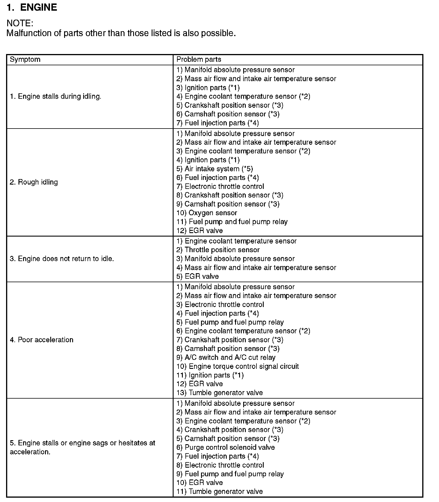 GENERAL DIAGNOSTIC TABLE