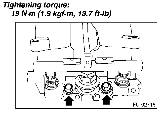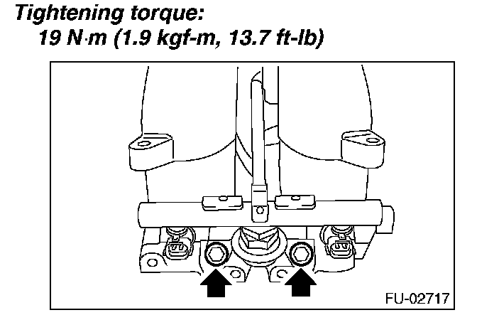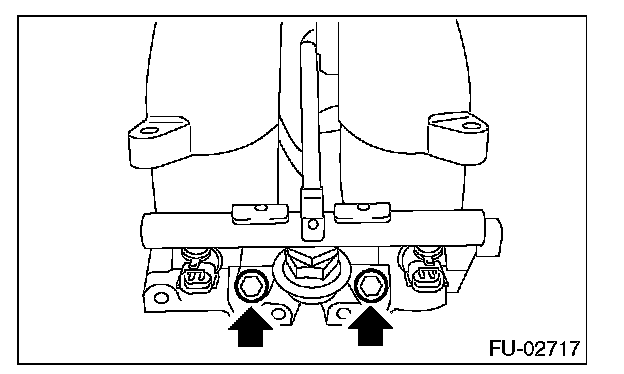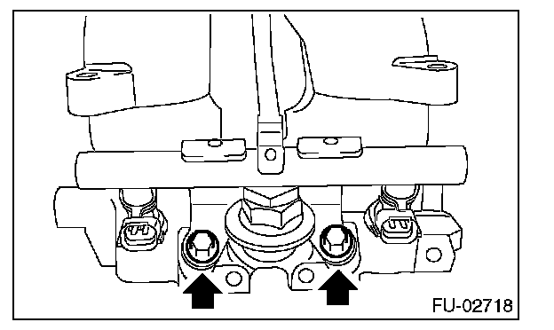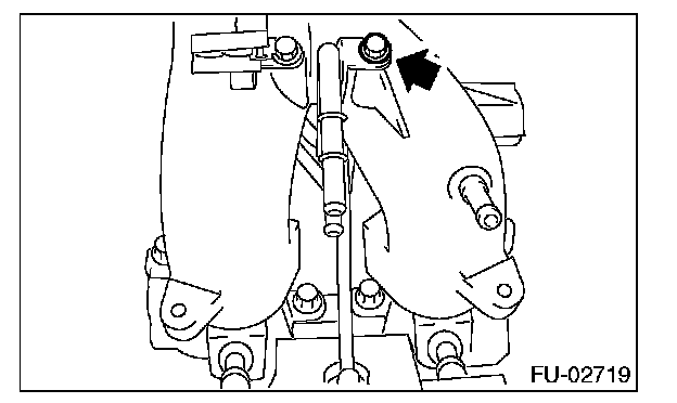^ Remove the bolts which hold fuel injector pipe onto intake manifold.