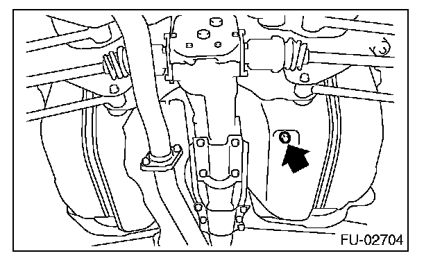 5. Drain the fuel from the fuel tank. Set a container under the vehicle and remove the fuel drain plug from the fuel tank.