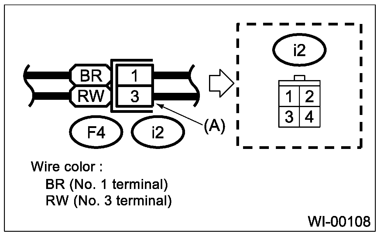 ^ The sketch of each connector in the wiring diagram usually shows (A) side of the connector. The relationship between wire color, terminal number and connector is described in figure.
