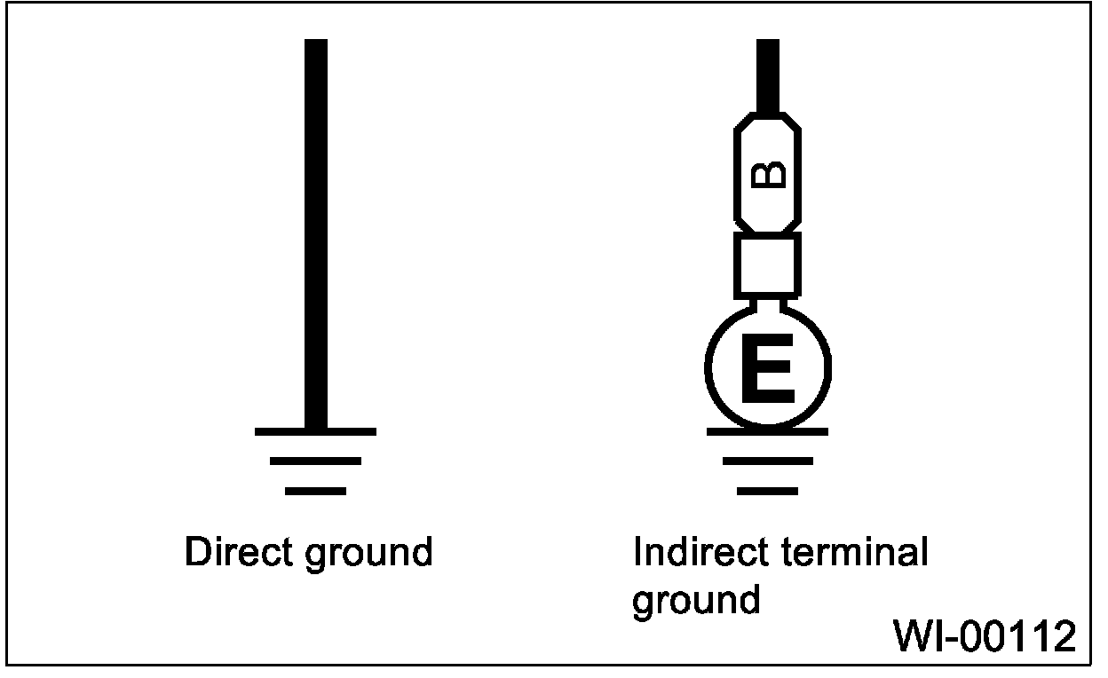^ Each unit is either directly grounded to the body or indirectly grounds through a harness ground terminal. Different symbols are used in the wiring diagram to identify the two grounding systems.