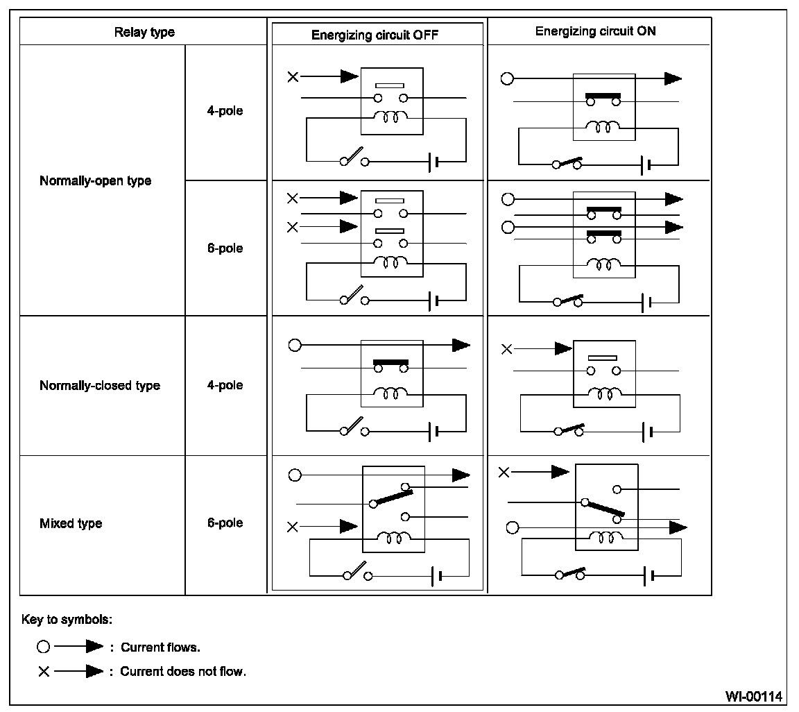 The normally-closed relay has one or more contacts. The wiring diagram shows the relay mode when energizing circuit is OFF.