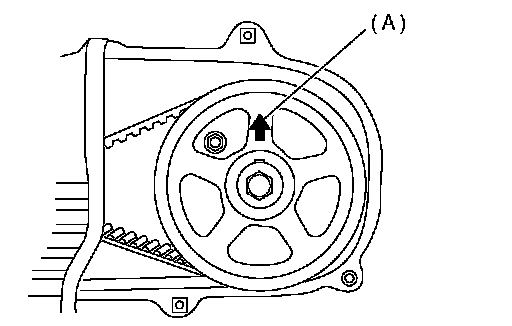 NOTE: When the arrow mark (A) on cam sprocket (LH) comes exactly to the top, #1 cylinder piston is brought to the top dead center of compression stroke.