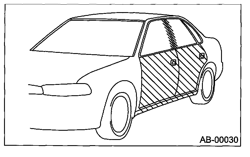 If the side section of vehicle as shown in the figure is damaged, check for the following, and replace damaged parts with new parts.