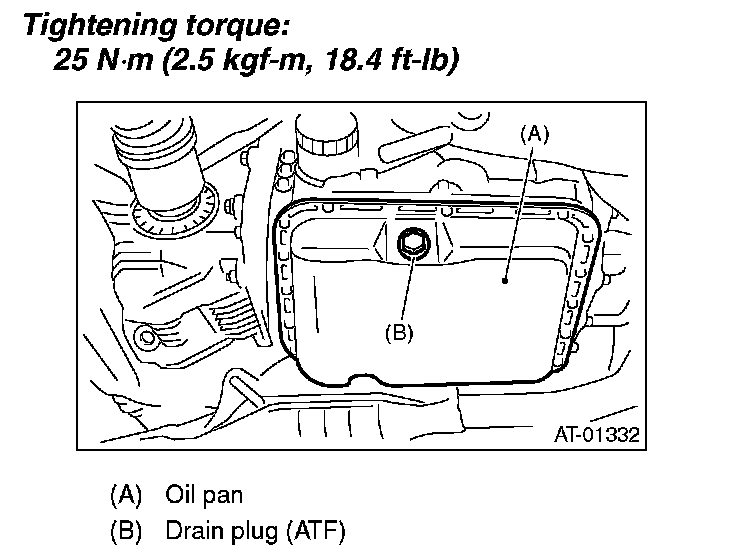 4. Replace with a new gasket, and then tighten the ATF drain plug.