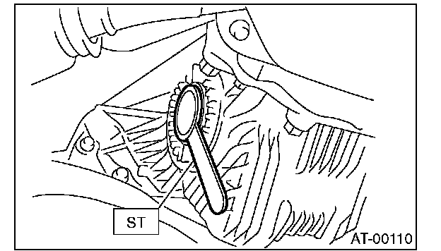 20. Align the spline of front differential shaft to that of differential bevel gear for insertion, and remove them using ST.