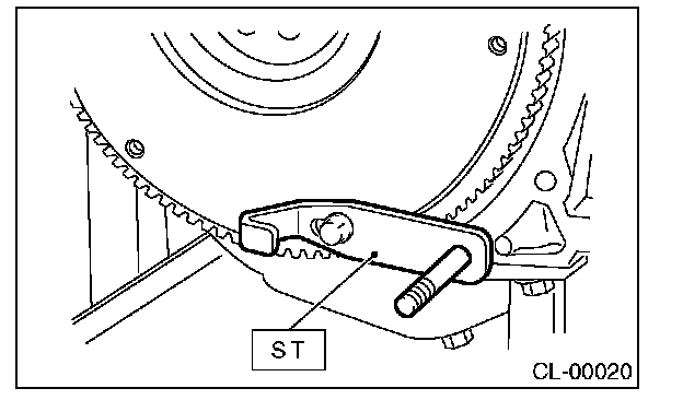 Tighten the flywheel installing bolts gradually. Each bolt should be tightened to the specified torque in a crisscross fashion.