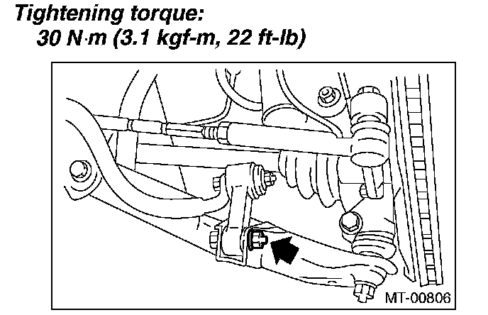 (2) Tighten the bolt which holds right upper side of transmission to engine.