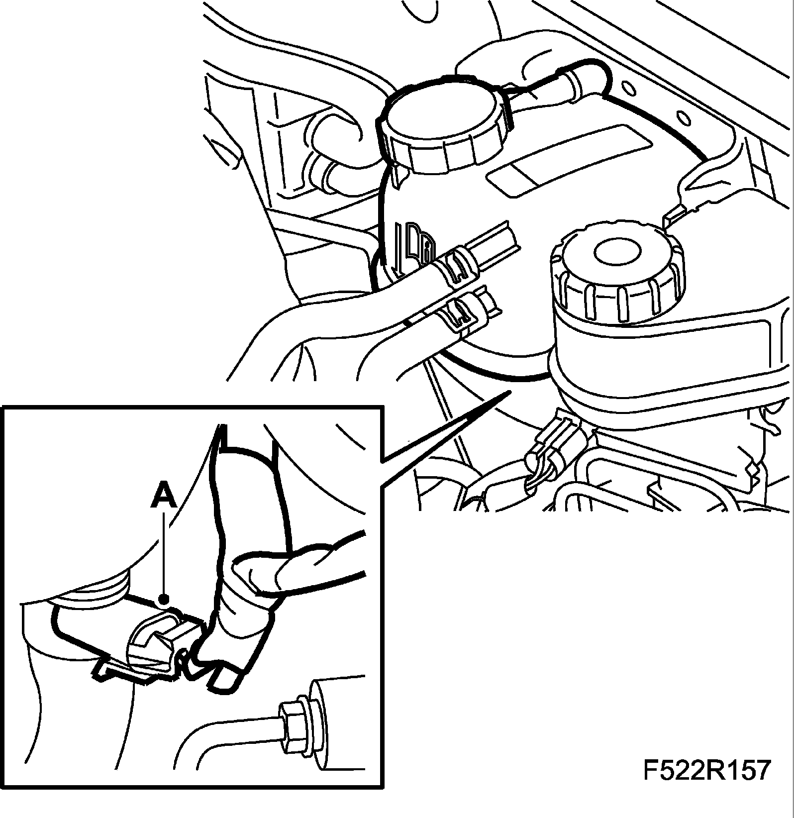 7. B207: Unplug the connector (A) for the coolant's level sensor.