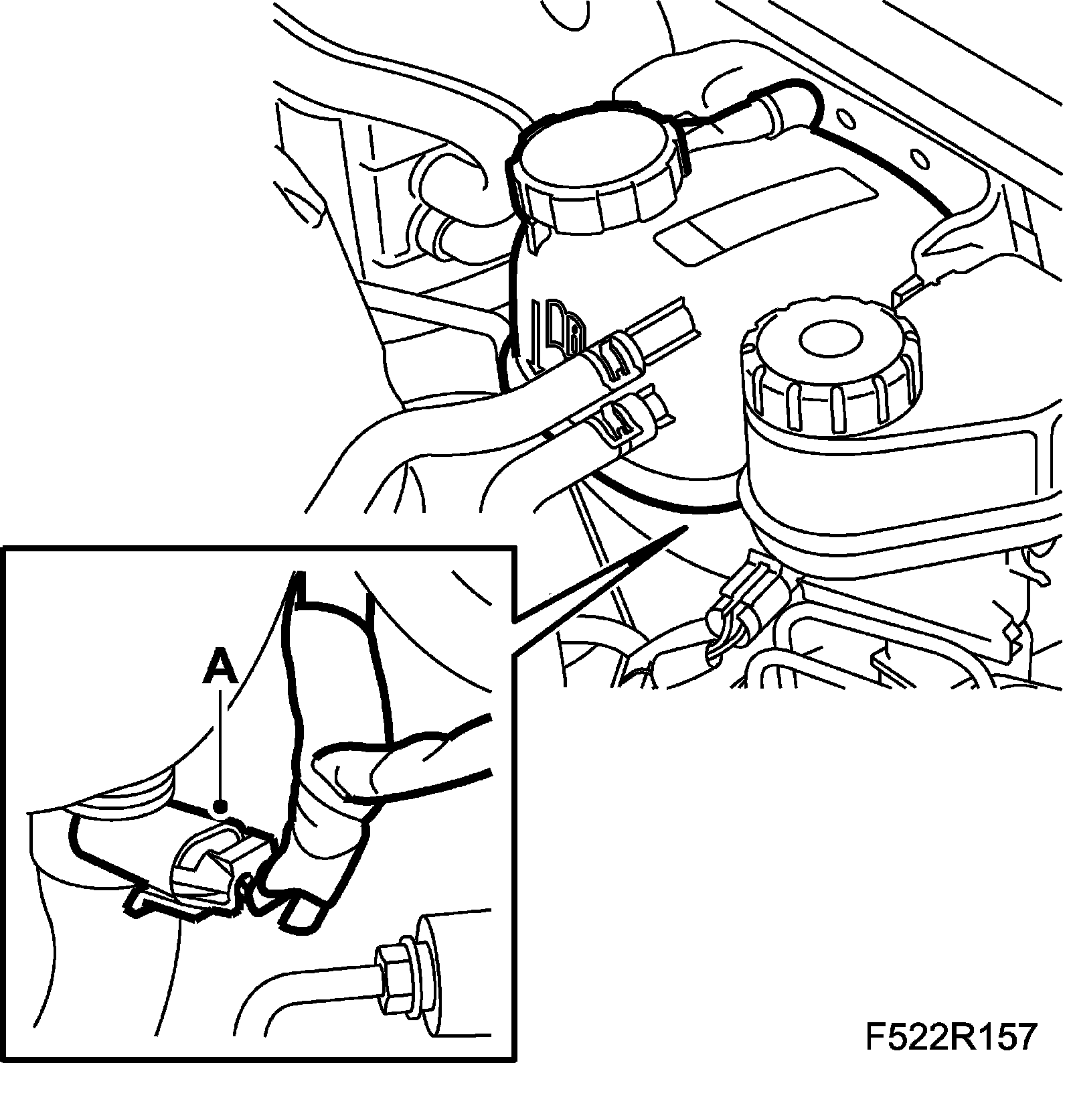 8. Unplug the connector (A) for the brake fluid reservoir's level sensor.