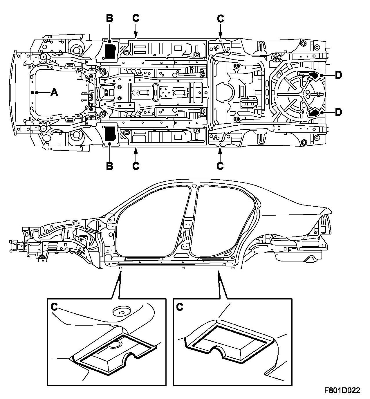 WARNING: If incorrect lifting or attachment points are used, the car may be displaced or fall from its raised position, which may result in serious damage to the car or serious personal injury.