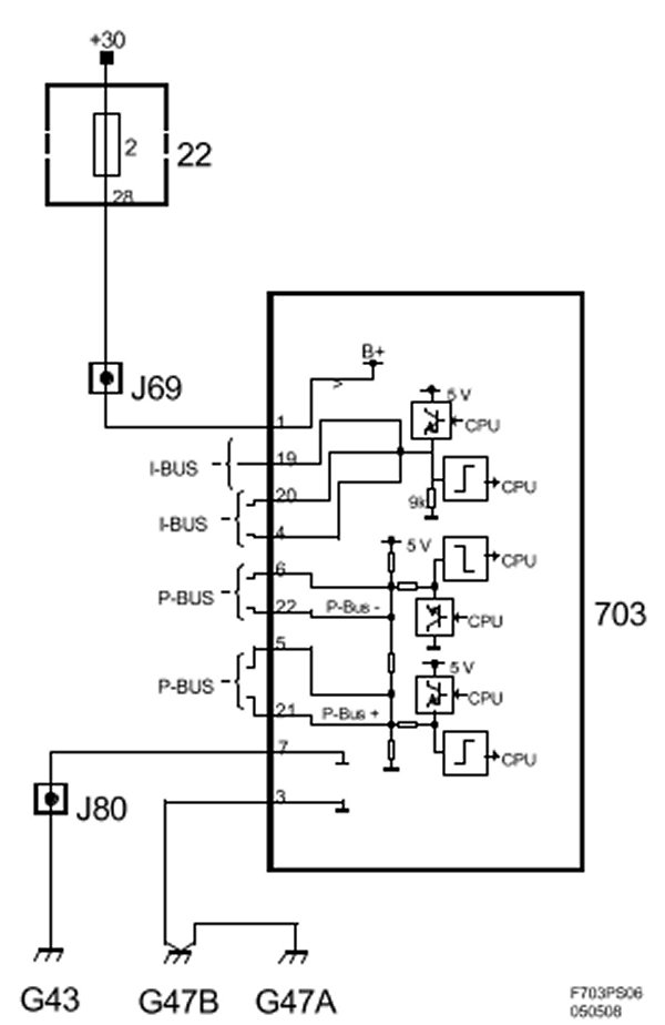 ^ Receiving information from the ISM and sending key position information on the bus. Read more, see Ignition Switch Module, ISM (20), Ignition switch (ISM), brief description and Ignition switch (ISM), detailed description.