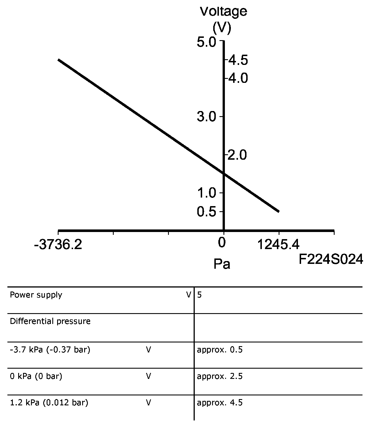 The pressure sensor determines the difference in pressure between the tank and the atmosphere, and supplies the control module with a proportional voltage.