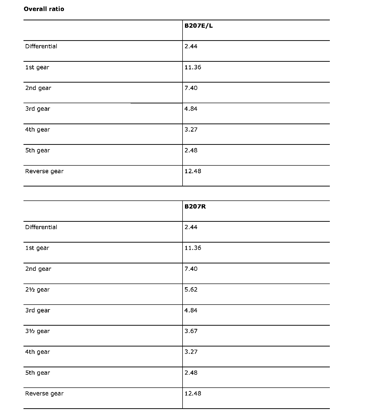 Gear ratios