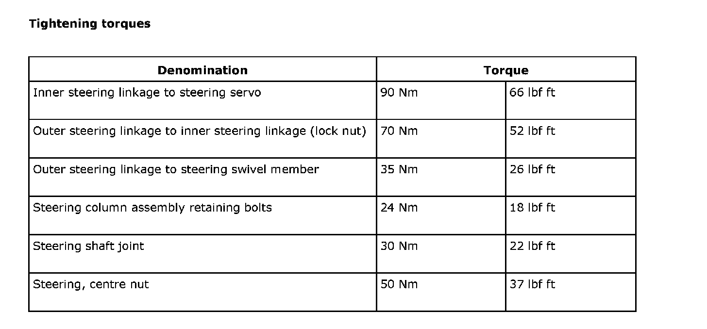 Tightening torques