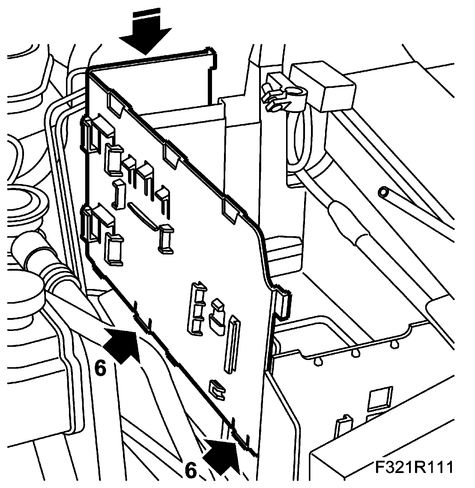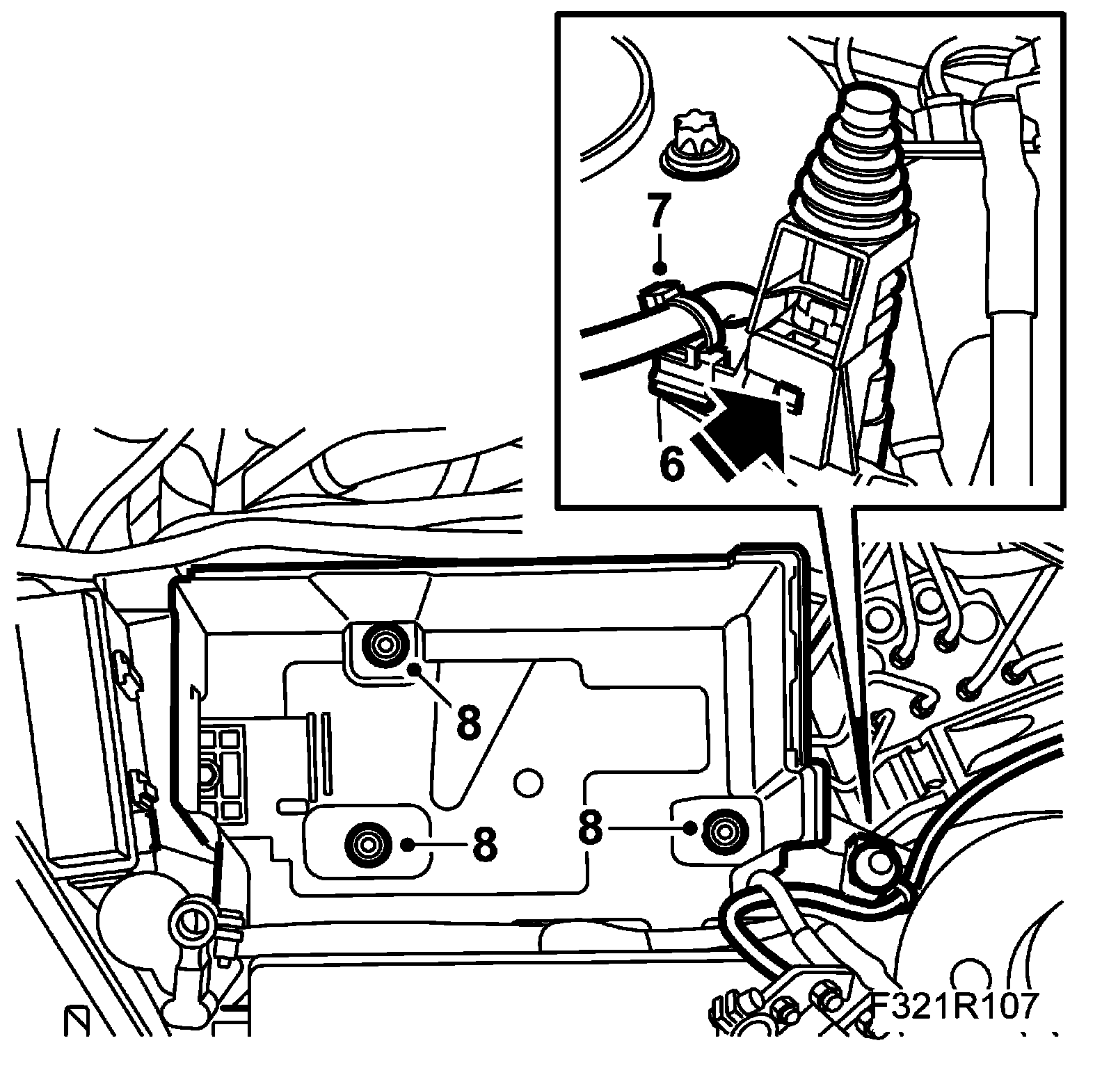 3. Cars with petrol engine: Press in the catch and move aside the fuse box in front of the battery.