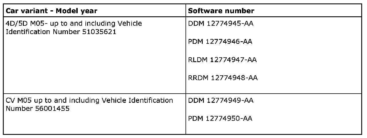 The software for pinch protection functionality has been improved from M07 in order to prevent the pinch protection from deploying, which means the window can not be closed even if there is nothing obstructing it. The software is also available for older cars according to the above (does not apply to 4D M03).