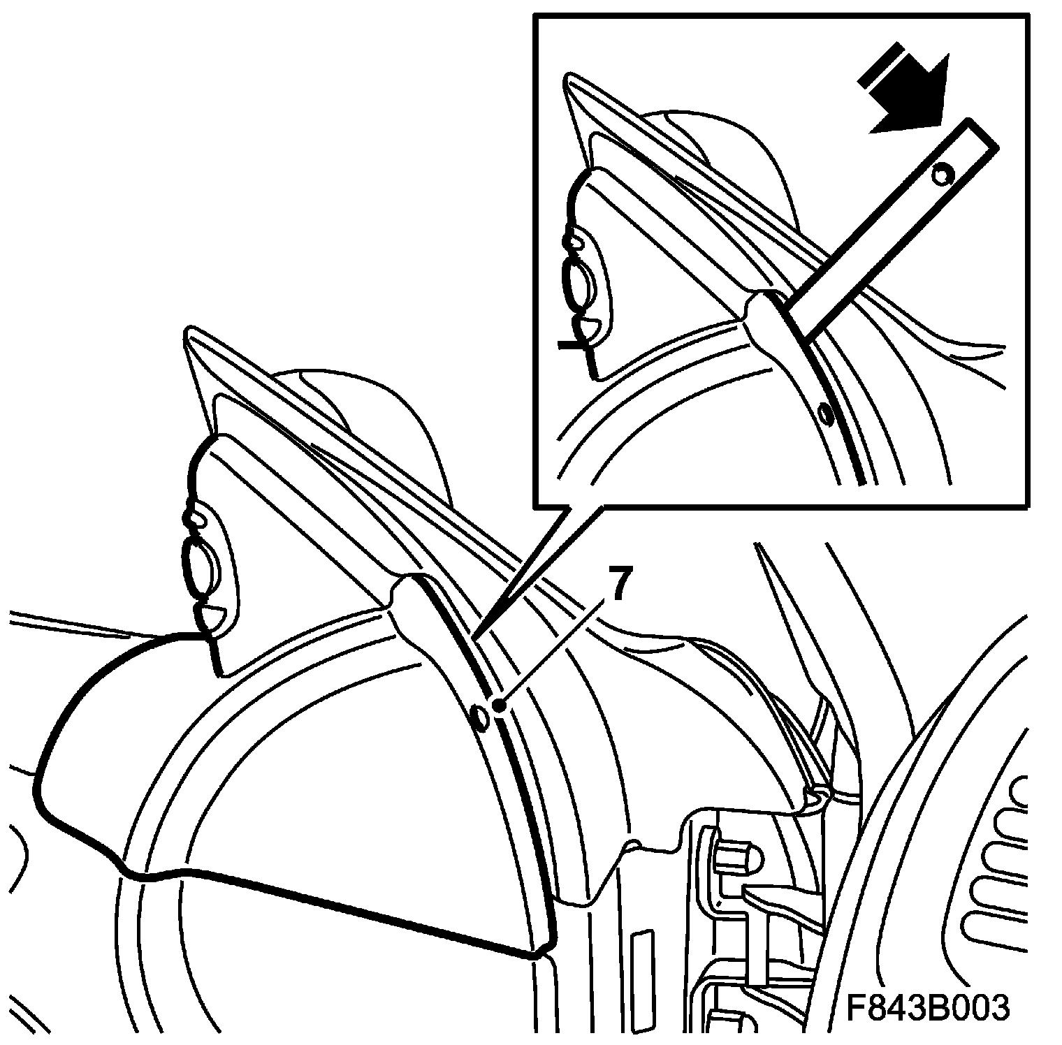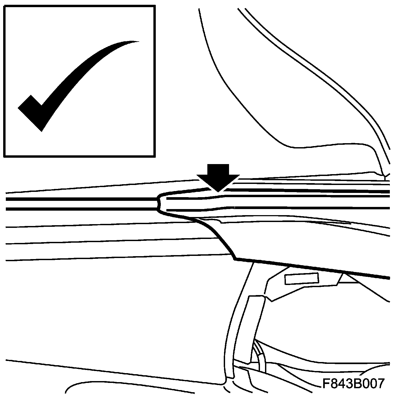 11. Check the outer and inner window seal (B). Check with the window down that the seal is not damaged or creased.