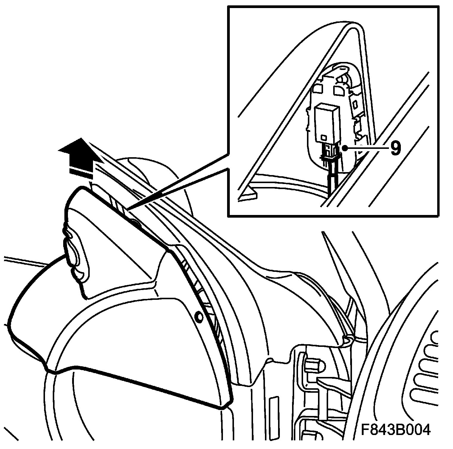 8. Remove the inner cover of the door mirror base by lifting the cover straight up.
