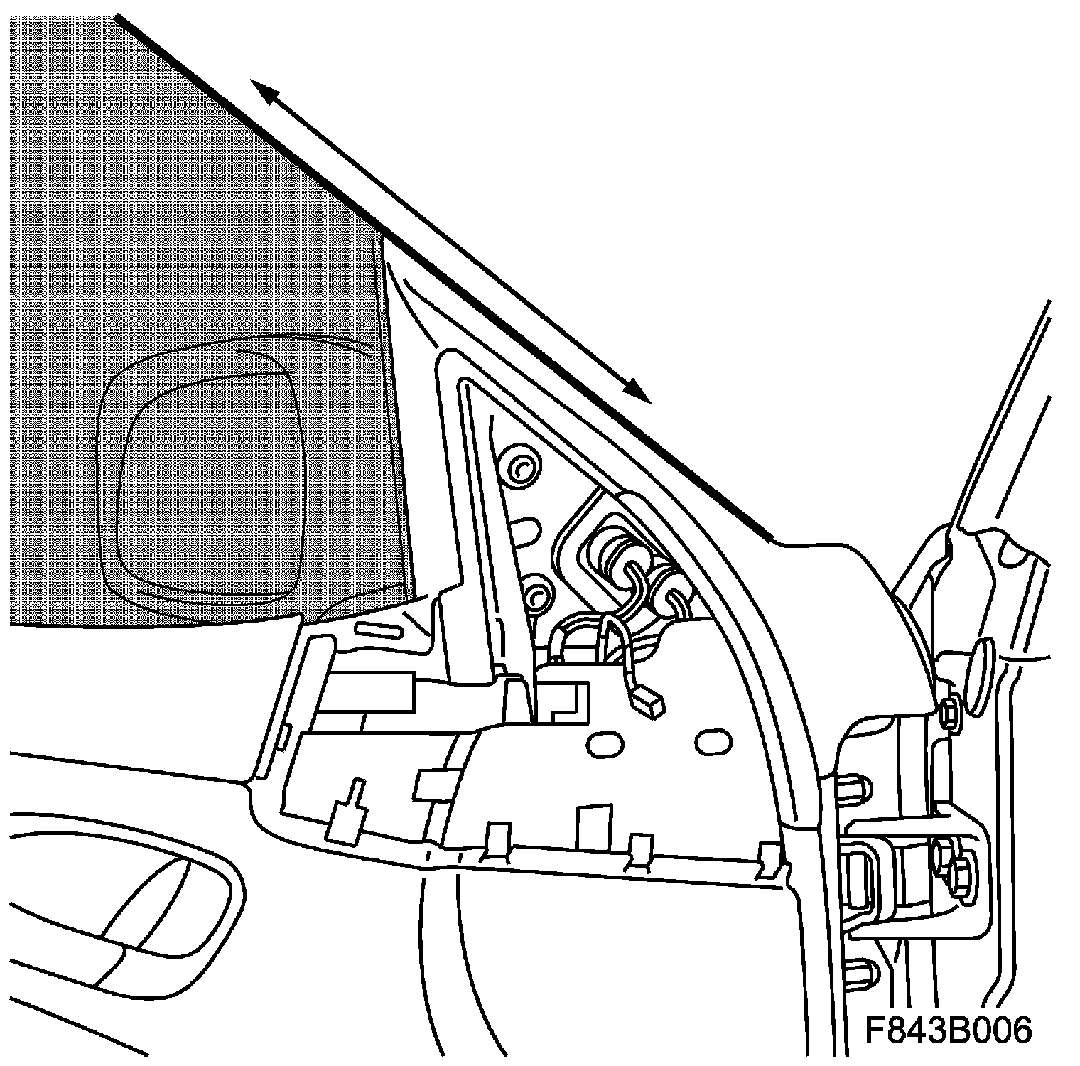 17. Check that the door mirror and door window align with the A-pillar seal.