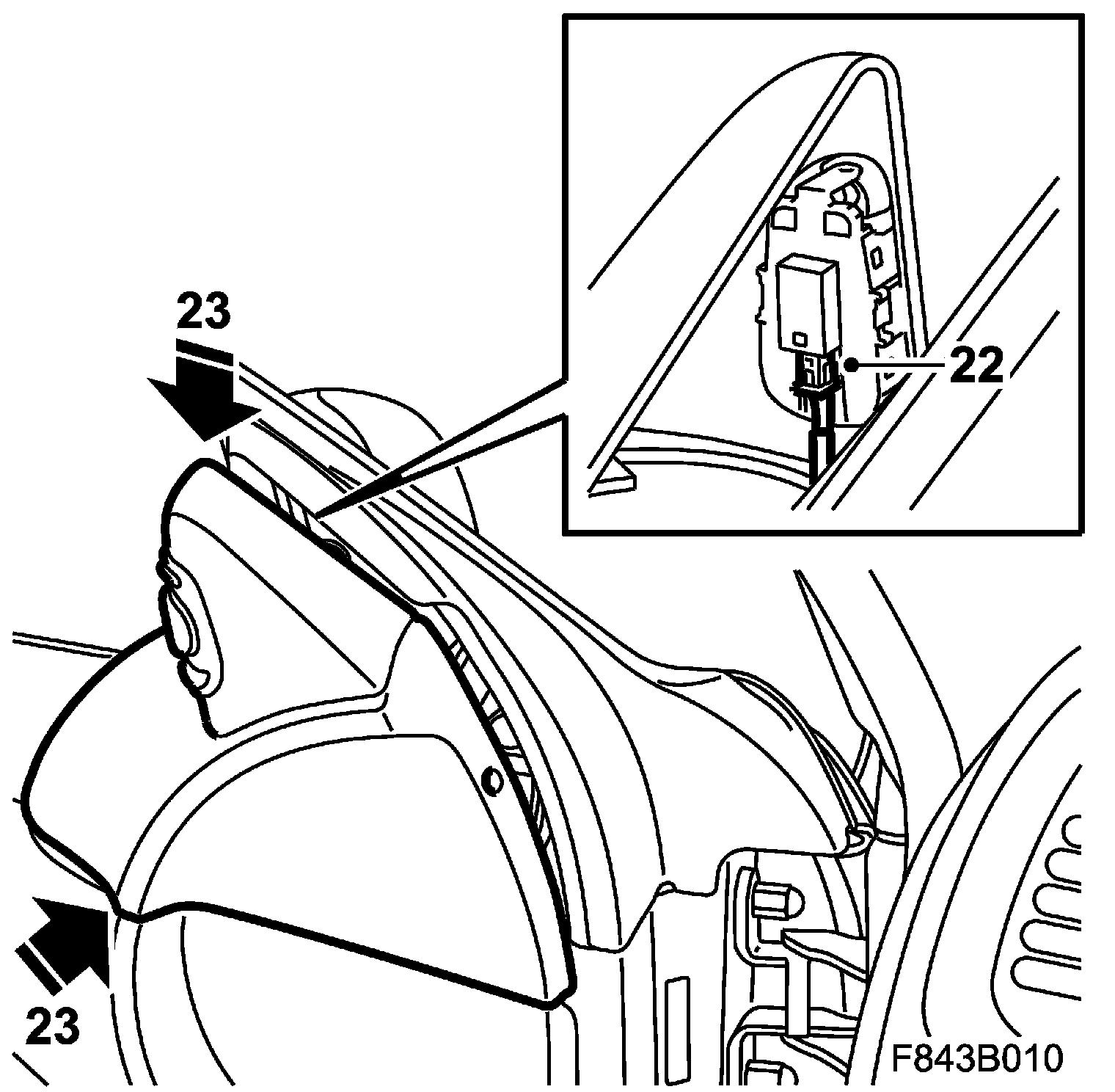 23. Fit the inner cover of the door mirror base by pressing it into place.