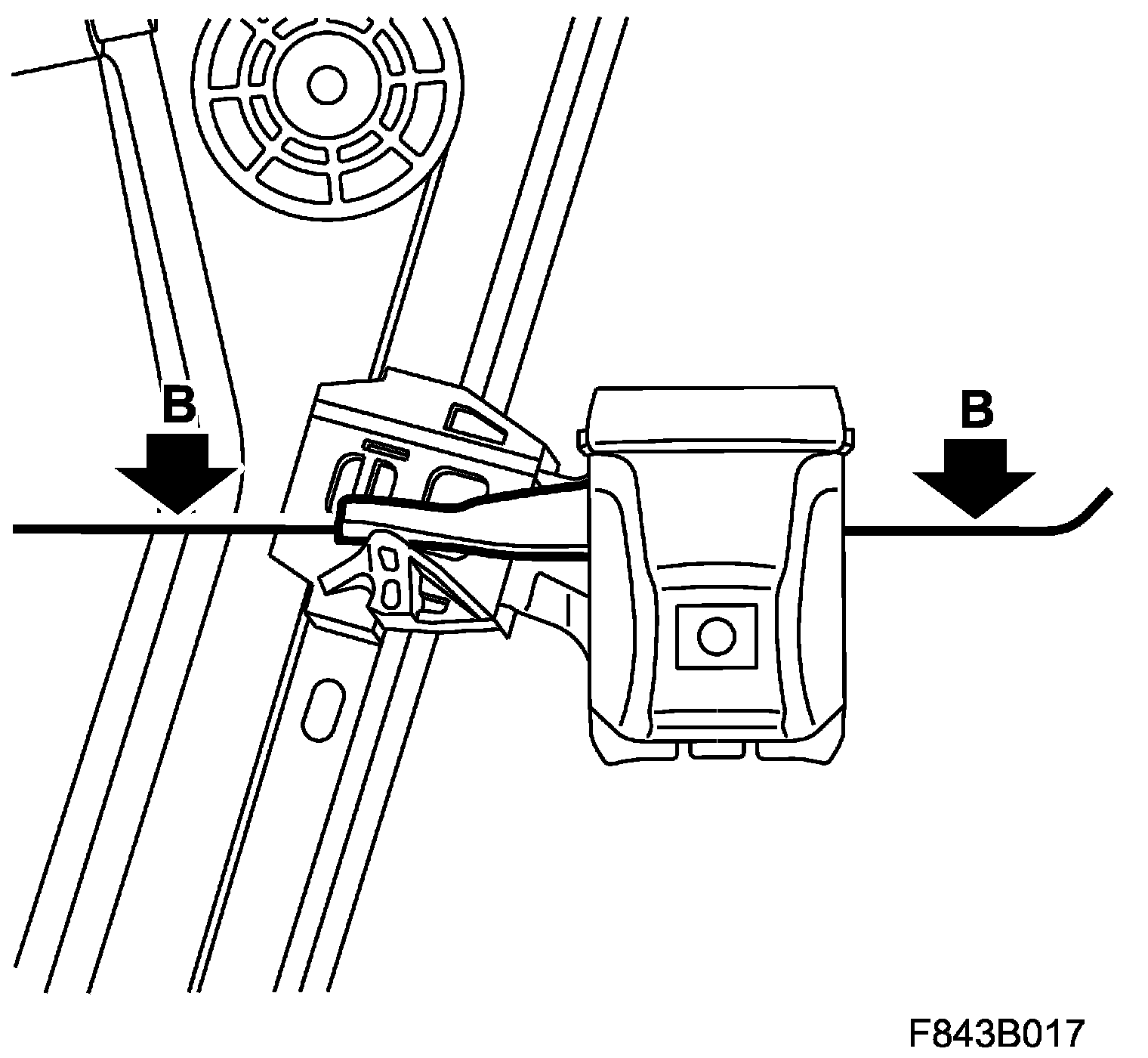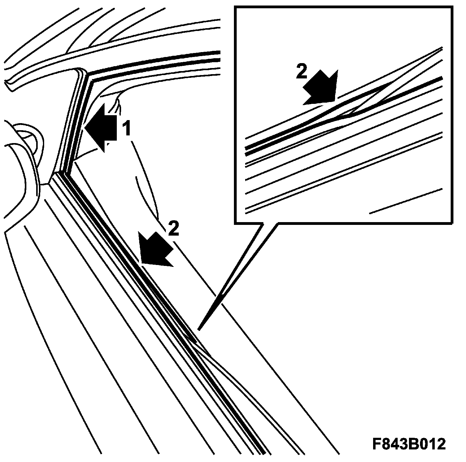 11. Check the outer and inner window seal (B). Check with the window down that the seal is not damaged or creased.