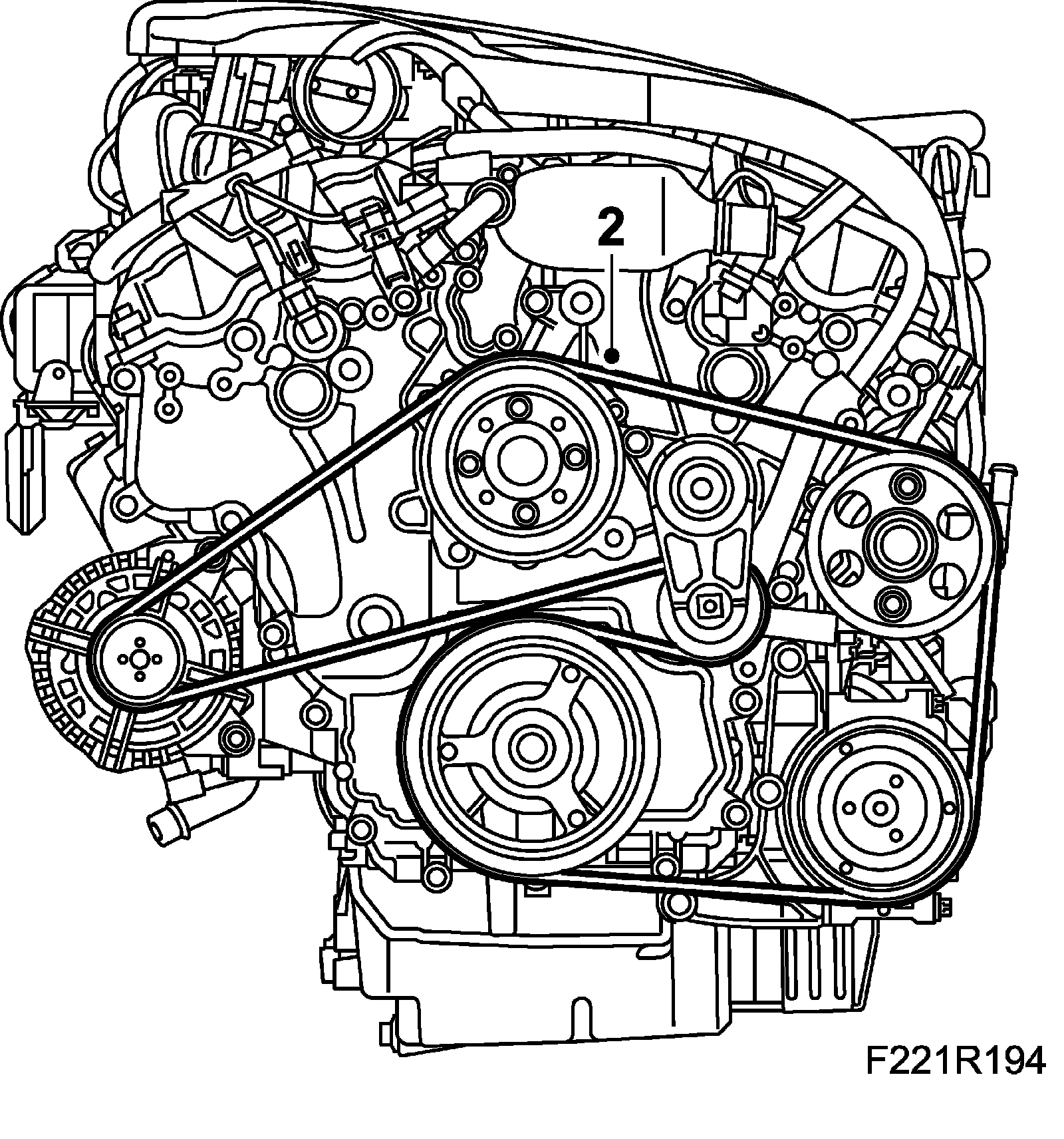 1. Position the belt, relieve the load on the belt tensioner and fit the belt. Start by fitting the belt on the belt tensioner.