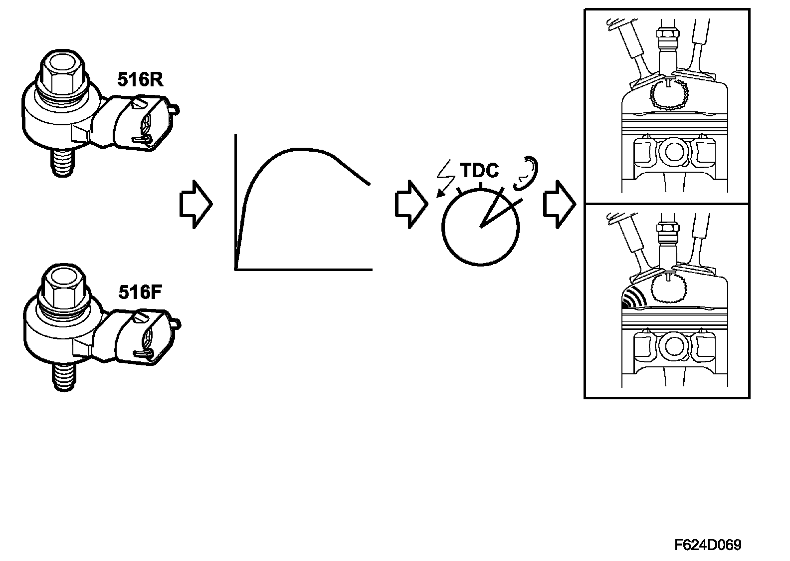 During normal combustion, the air/fuel mixture is ignited by the spark form a spark plug. The flame expands in the combustion chamber originating from the centrally located spark plug.