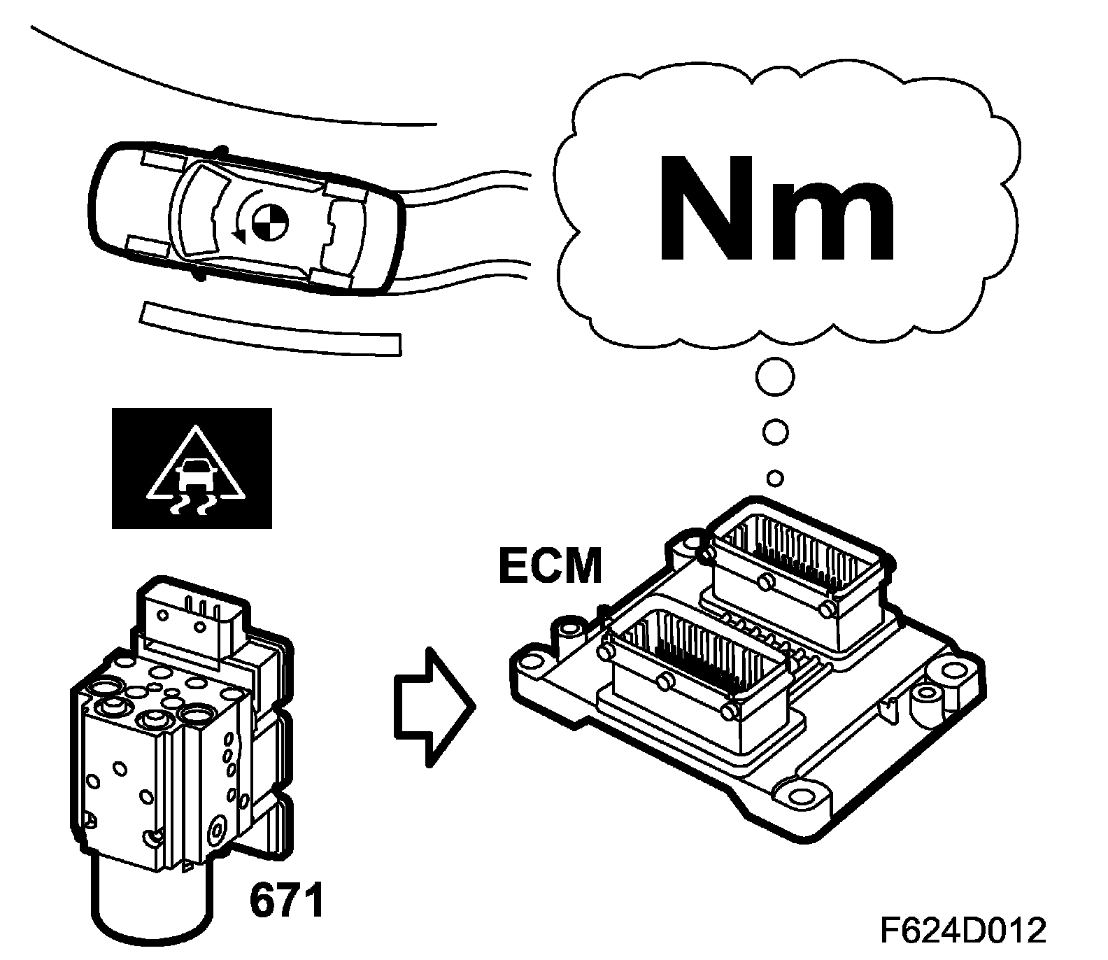 In the event of wheel spin, TCS can request a limitation of engine torque (negative request) to counteract it. Likewise, ESP can request a limitation of engine torque if the car skids. TCS, but above all ESP, can request an increase in engine torque (positive request) to counteract a skid, for example.