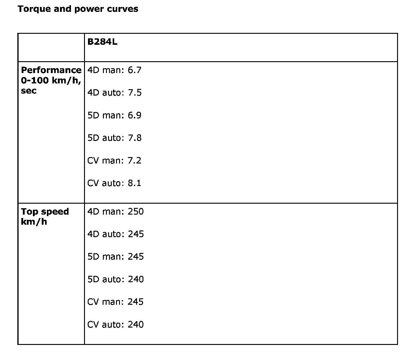 Torque and power curves