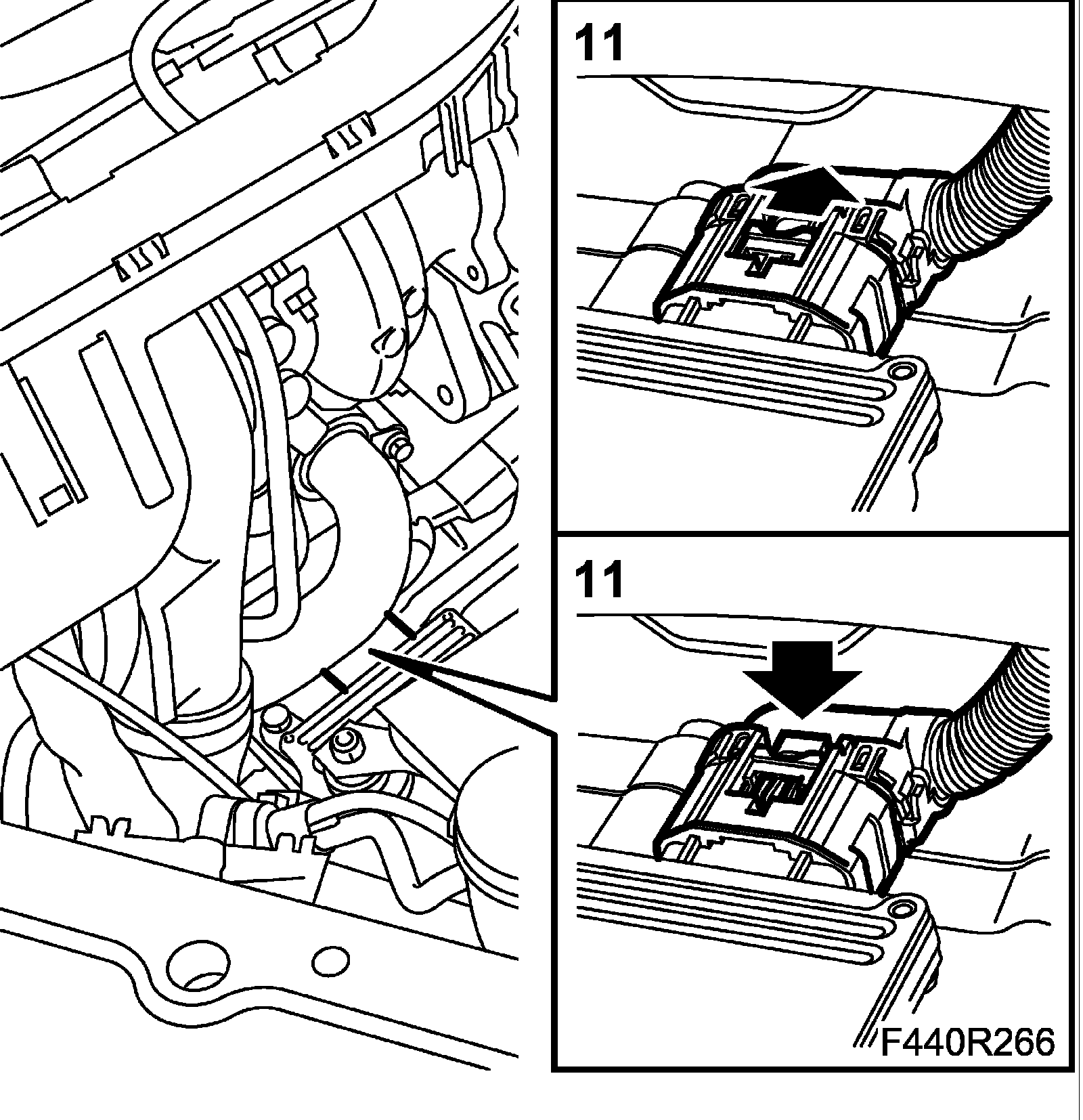 Important: Take care when plugging in the connector so as not to damage or press out the pins/sleeves in the connector. For further information regarding connectors, refer to Connectors, handling and inspection.