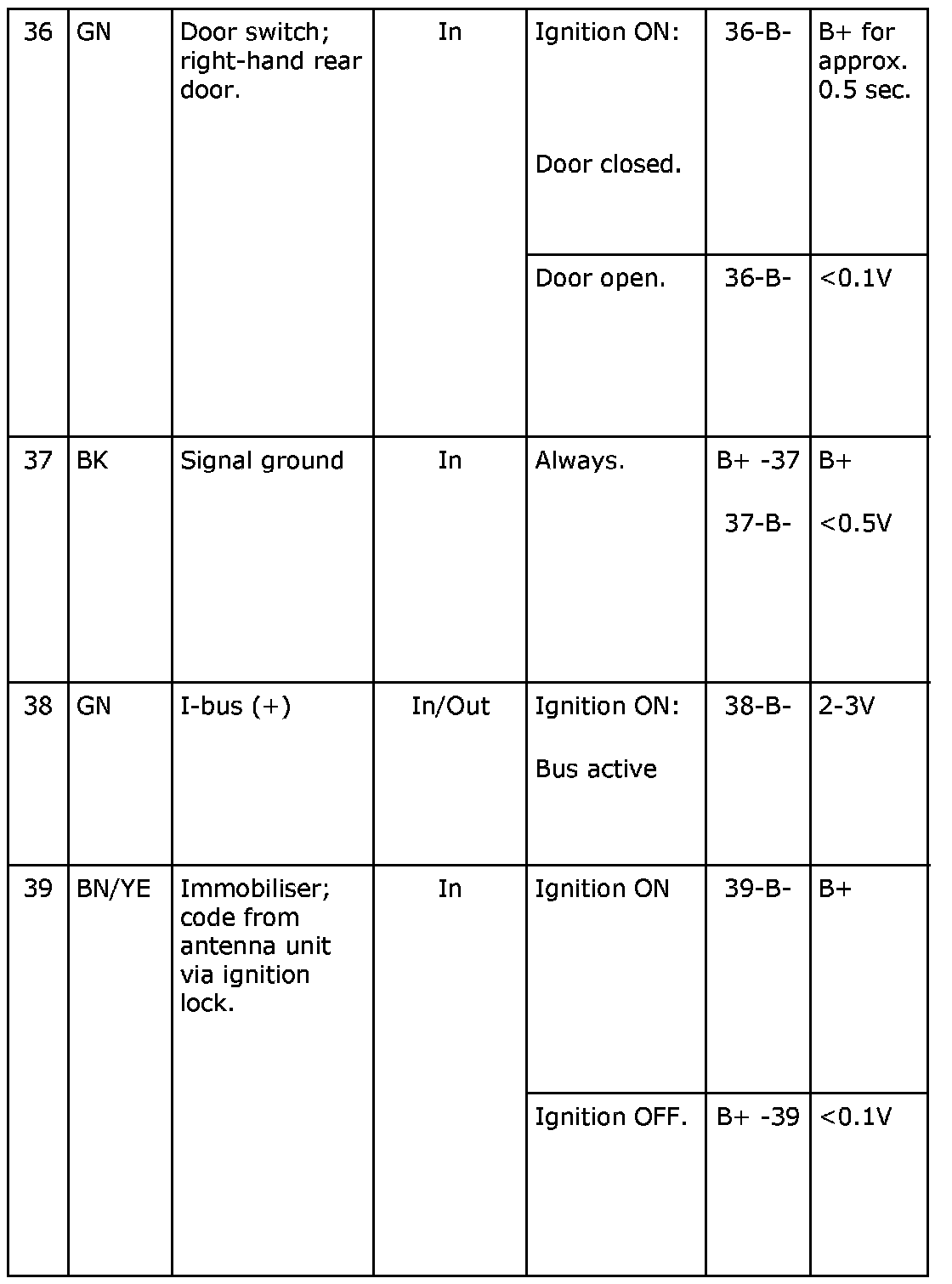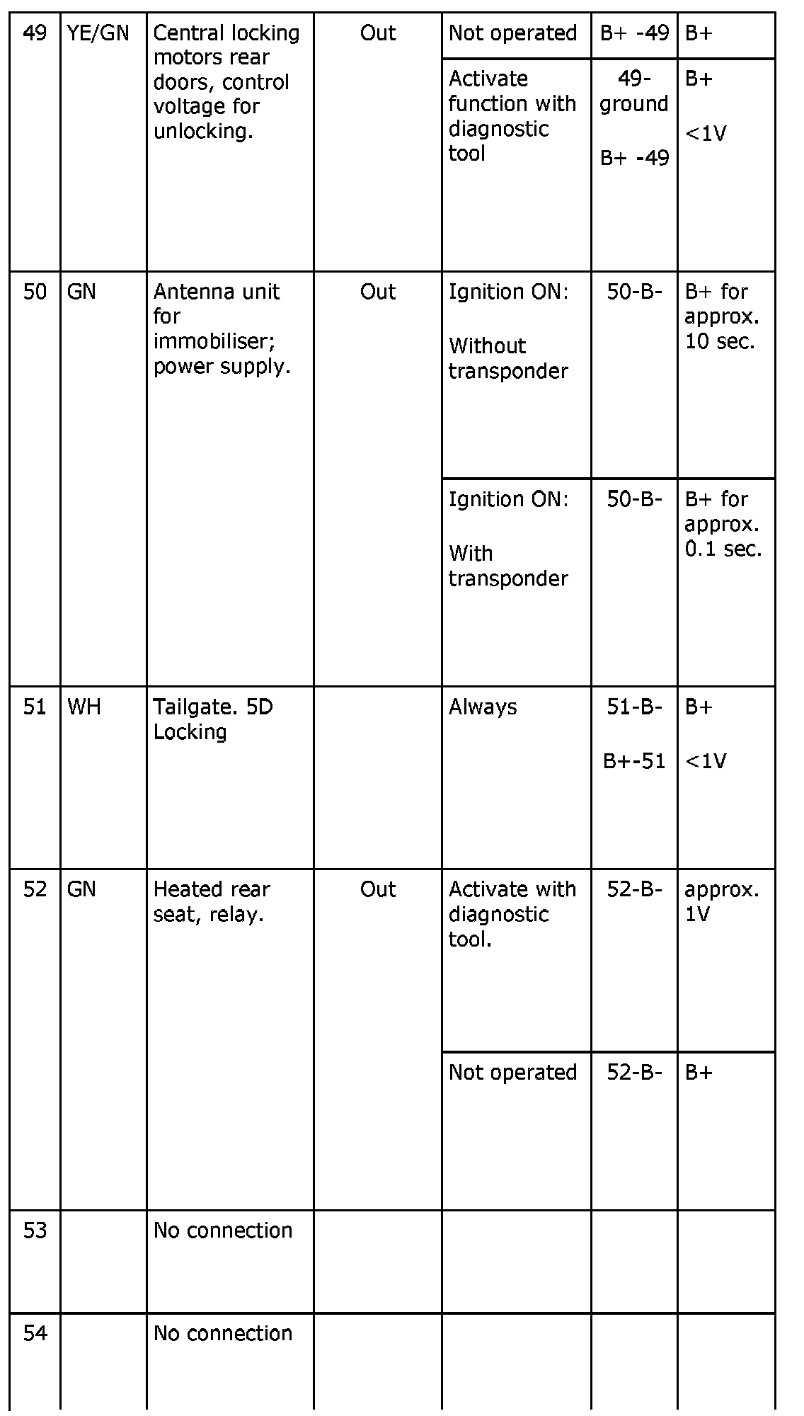 ^ The nominal values specified apply with the ignition in the ON position unless otherwise stated.