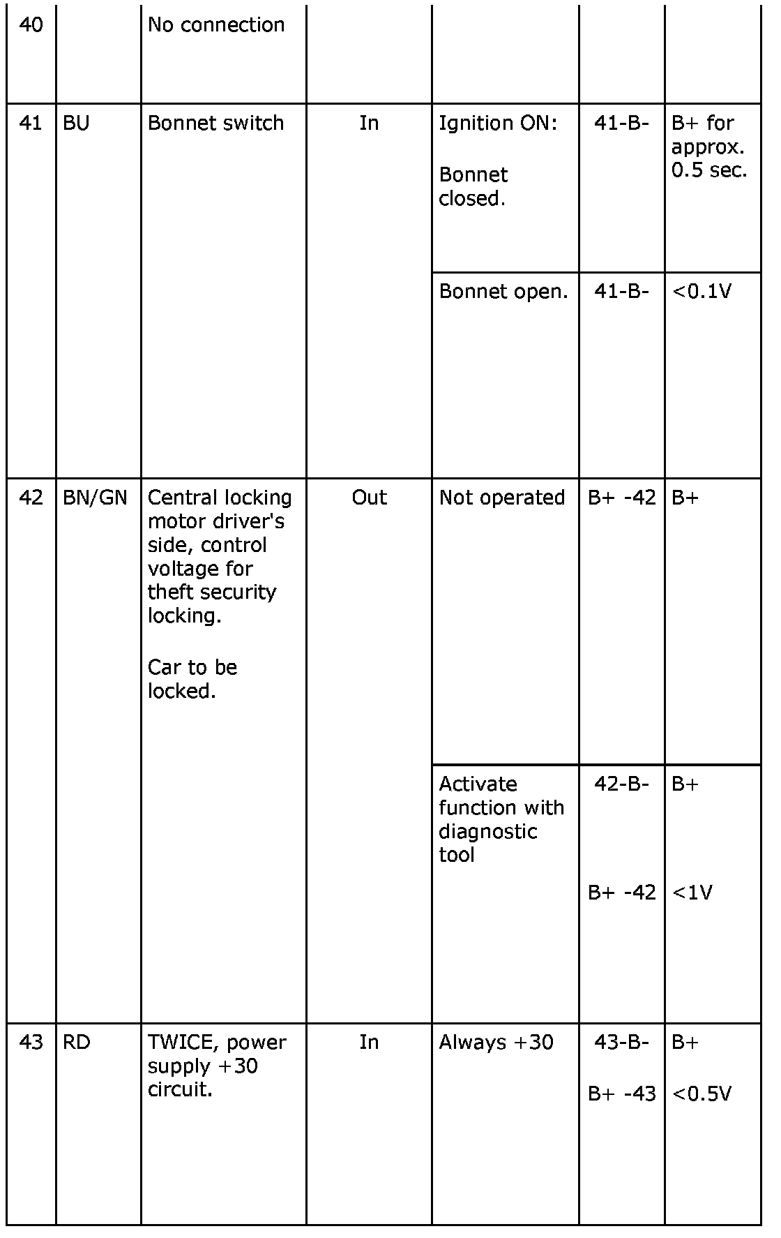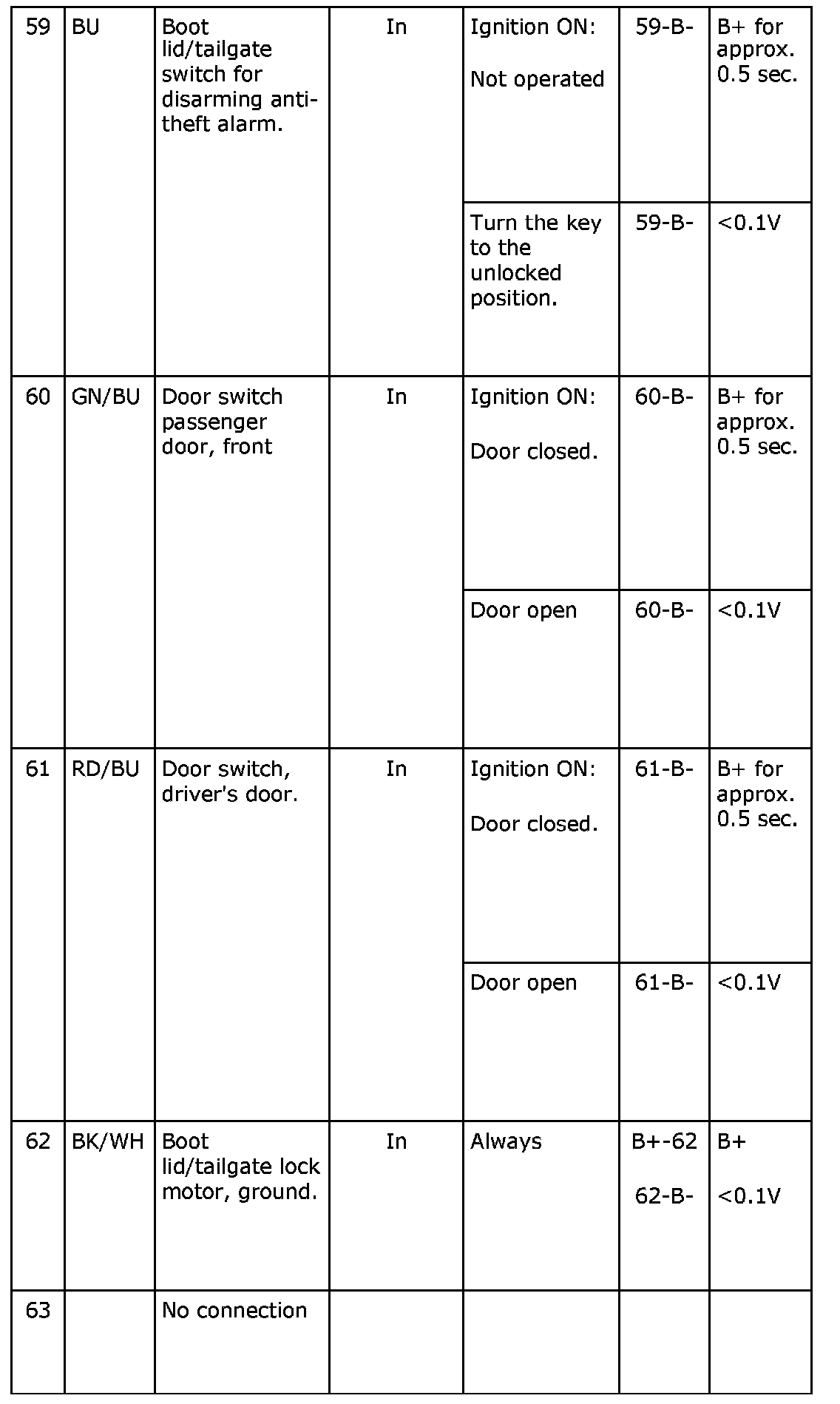 ^ If any reading is not OK, consult the wiring diagram to trace the leads, connectors or components which should be checked more thoroughly.