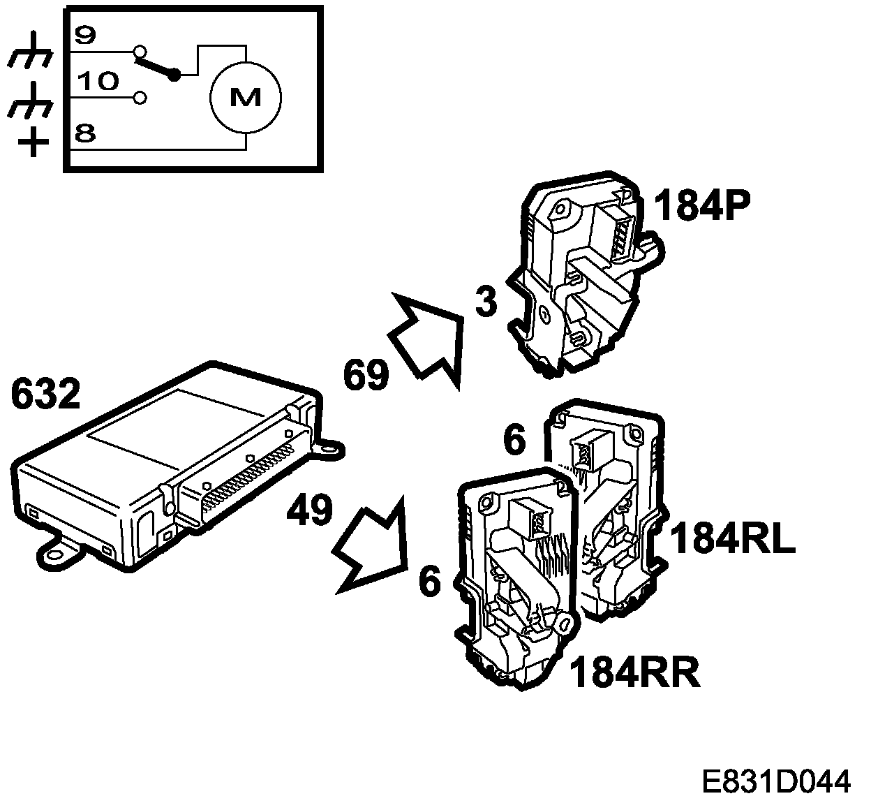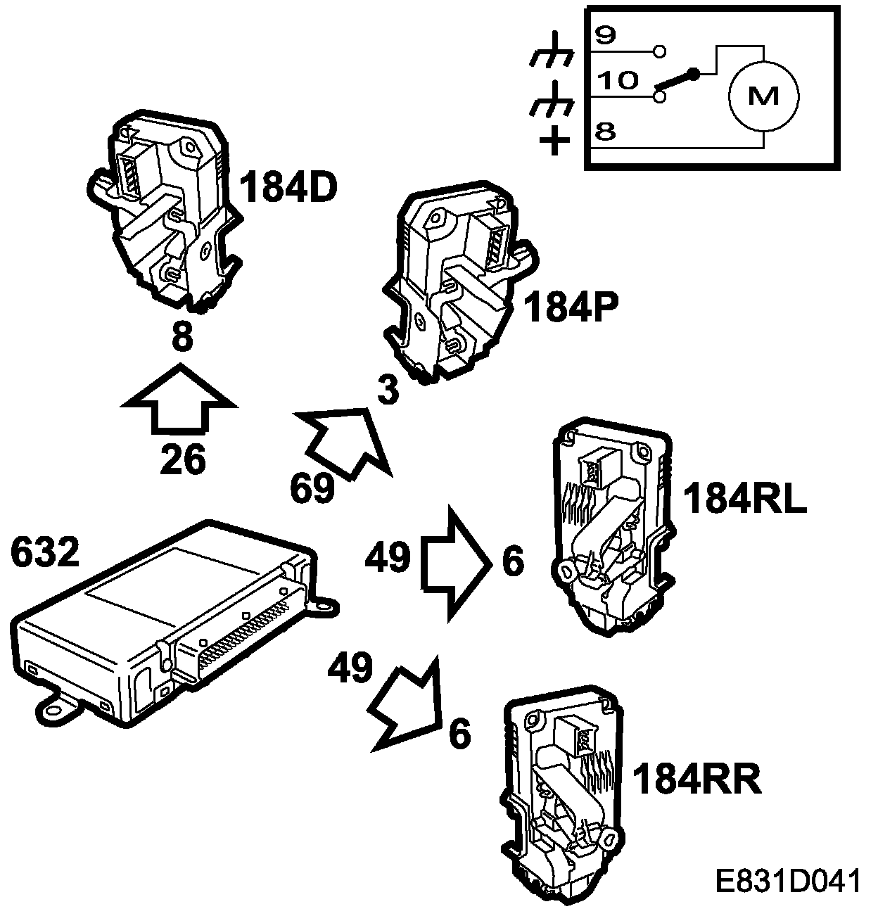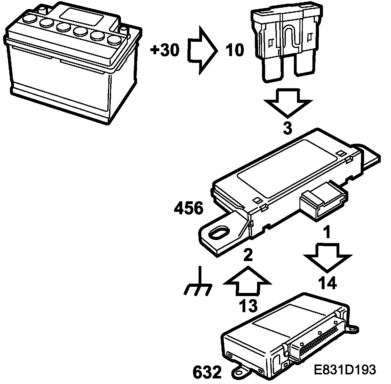 The receiver is supplied with power on pin 3 with +30 from fuse 10. It is also connected to the TWICE control module as follows: