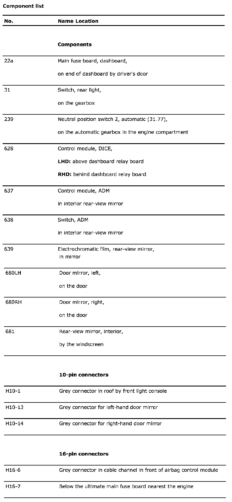 Component List (Part 1):