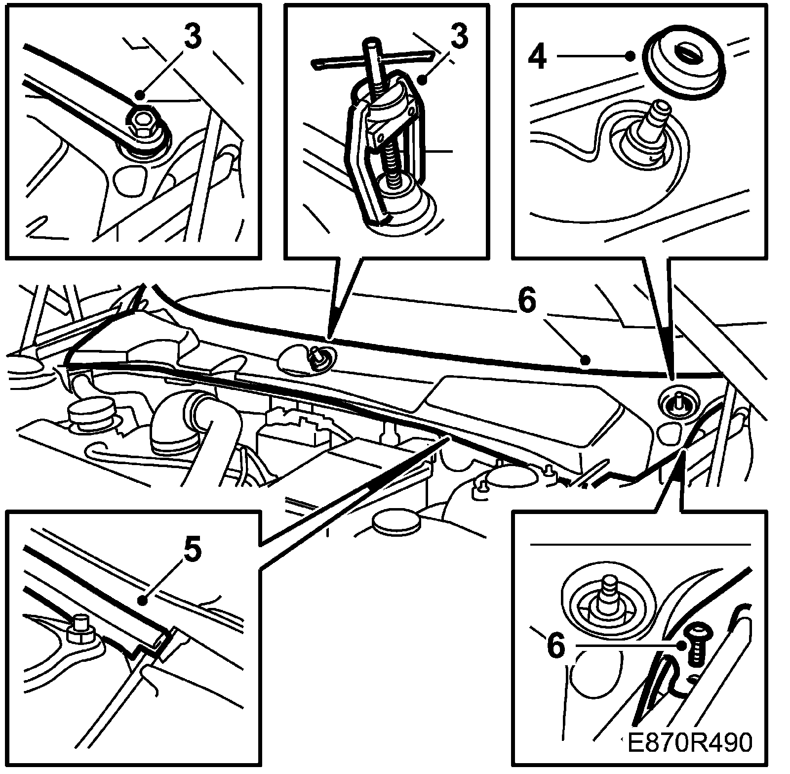 3. Remove the wiper arms with special tool 85 80 144 Puller, windscreen wiper arm.