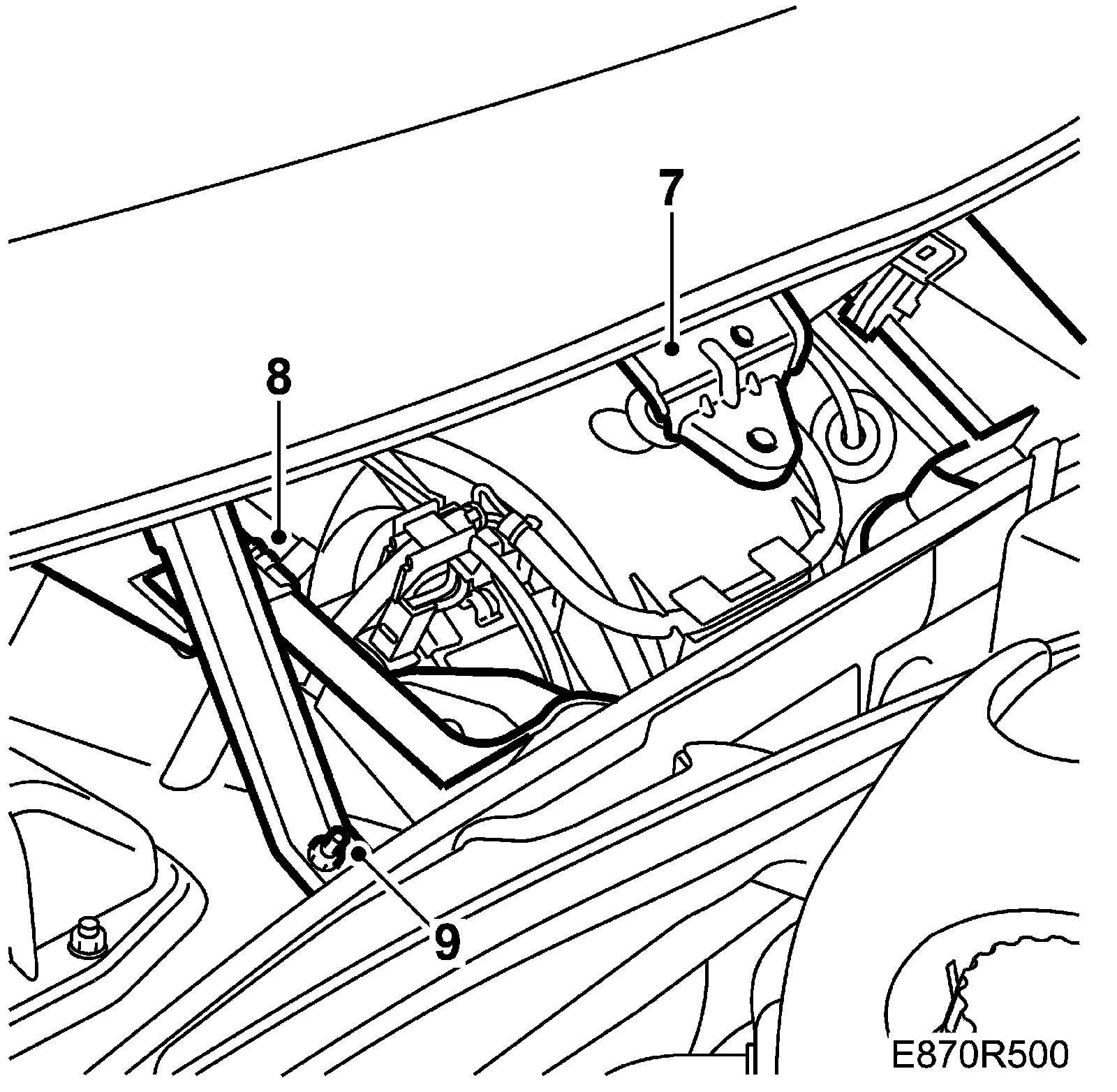 Hold the wire to the bonnet release to one side and lift the cover backwards towards the windscreen.
