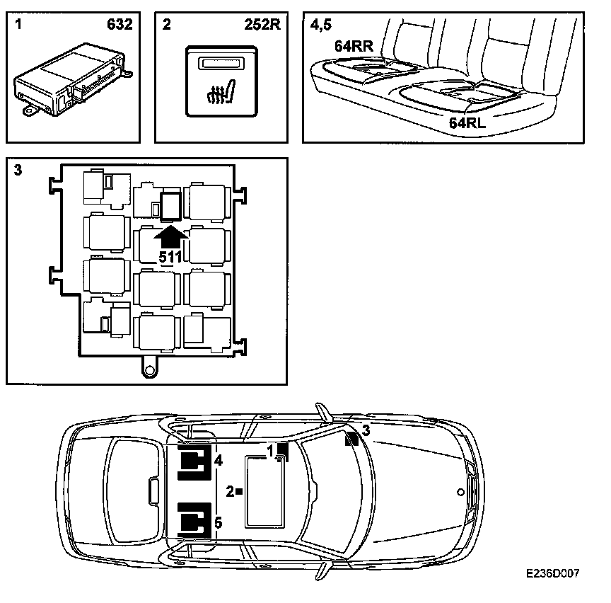 5. Heating pad, rear seat right (64RR)